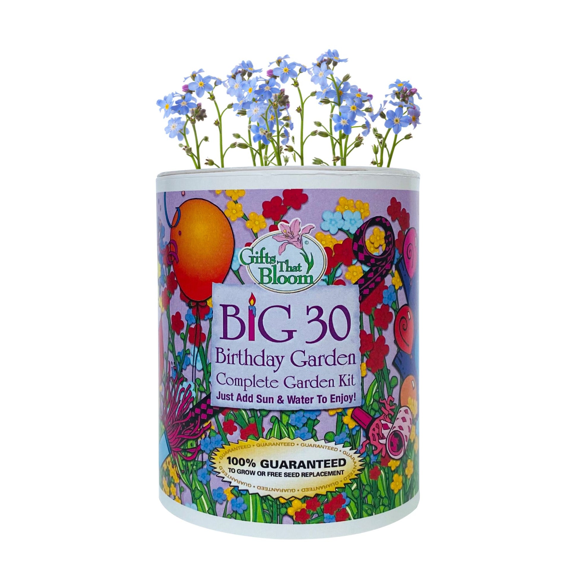 Bloom into a new decade with the Big 30 Garden Grocan! This delightful kit is designed to help you celebrate turning 30 with the beauty and significance of Forget-Me-Nots, flowers that symbolize remembrance and new beginnings.