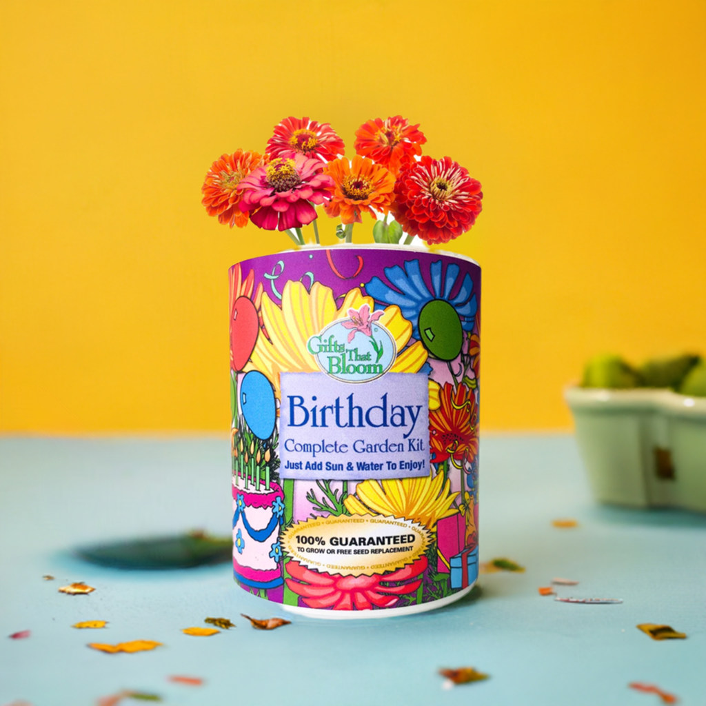 Celebrate a birthday with the gift of growth and nature! The Birthday Garden Grocan is a wonderful and thoughtful present that includes everything needed to grow vibrant Zinnia flowers. This kit contains Zinnia seeds, a peat pellet (soil), a biodegradable pot, and easy-to-follow planting instructions. As the recipient nurtures their flowers, they’ll enjoy the experience of seeing their Zinnia plants bloom and flourish, making it a gift that keeps on giving.