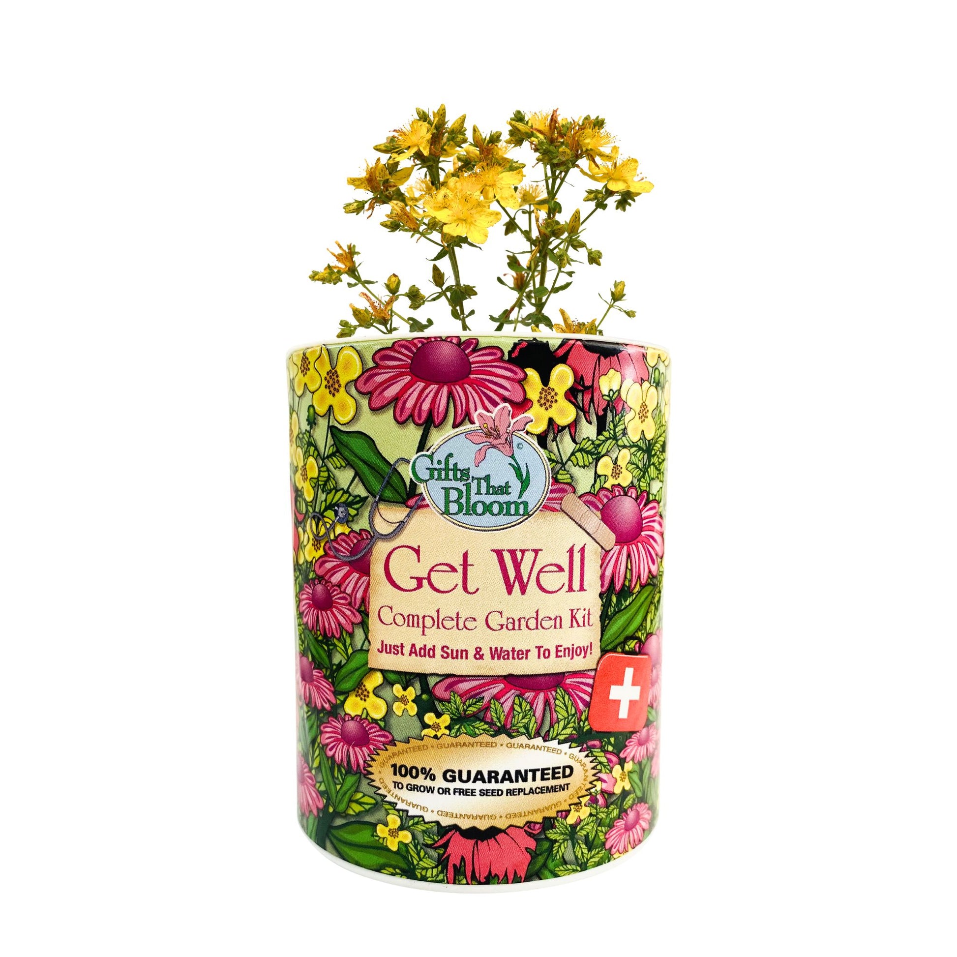 The Get Well Garden Grocan is a thoughtful and uplifting gift designed to bring comfort and joy to someone who's not feeling their best. Inside this complete package, you'll find St. John's Wort seeds, known for their potential mood-boosting properties, a peat pellet (soil), a biodegradable fiber pot, and easy-to-follow planting instructions.